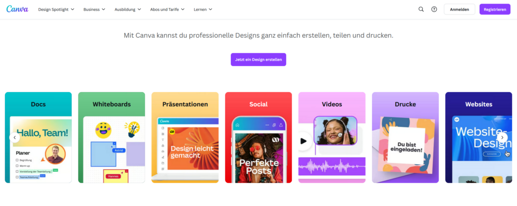 | Kreative Design-Tools | Canva – Designe Poster, Bilder, Präsentationen und andere Inhalte mit verschiedenen Vorlagen |
