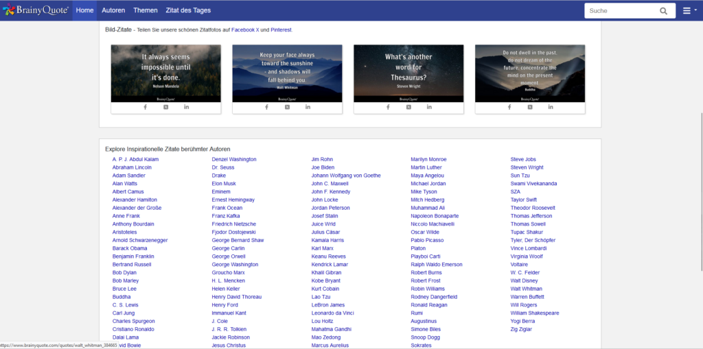 | Zufällige Zitate und Inspiration | BrainyQuote – Lies inspirierende Zitate und nutze sie für kreative oder entspannende Pausen |